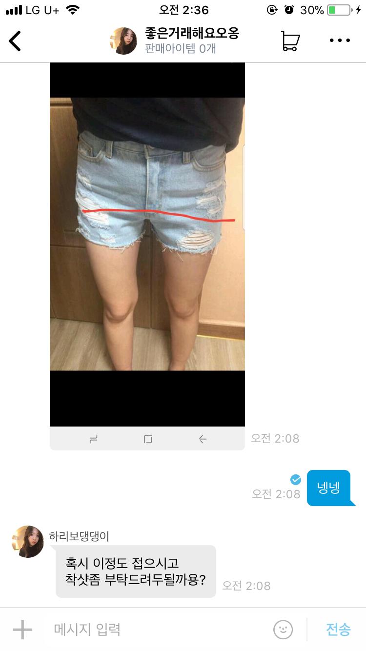 핫팬츠 문의하면서 더짧은 바지는 없냐고
