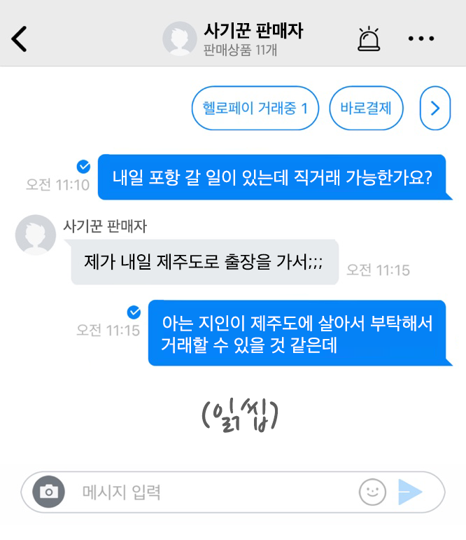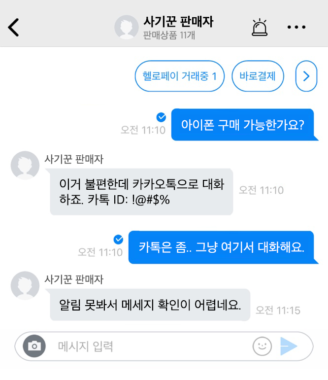 중고거래 앱 자체 채팅기능이 있는데 굳이 카톡으로 대화하자고 함.